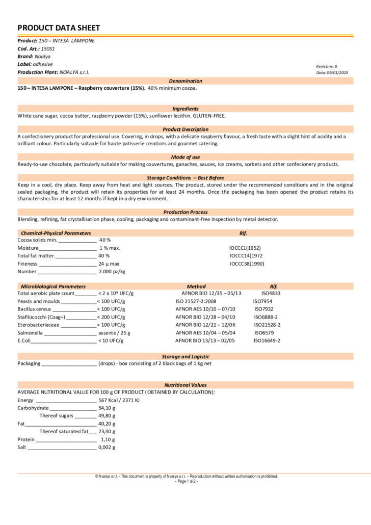 Spezifikation Art. 150S1 – Raspberry Couverture ING